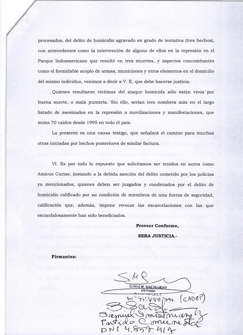 Los días 10, 12, 15, 19 y 24 de Mayo de 2017 llevamos a juicio oral y público a la Policía Metropolitana (hoy Policía de la Ciudad) que disparó balas de plomo contra los comunicadores de la RNMA en el violento desalojo del acampe de la Sala Alberdi en Marzo de 2013. El miércoles 31 de Mayo será la Sentencia.