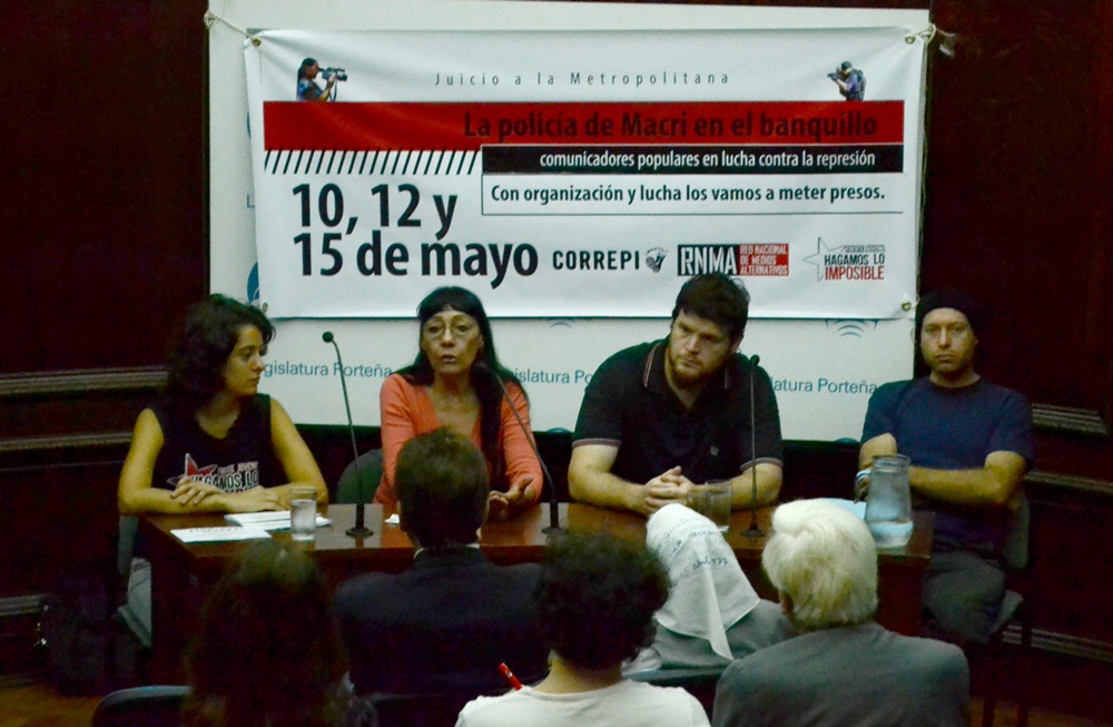 Los días 10, 12, 15, 19 y 24 de Mayo de 2017 llevamos a juicio oral y público a la Policía Metropolitana (hoy Policía de la Ciudad) que disparó balas de plomo contra los comunicadores de la RNMA en el violento desalojo del acampe de la Sala Alberdi en Marzo de 2013. El miércoles 31 de Mayo será la Sentencia.