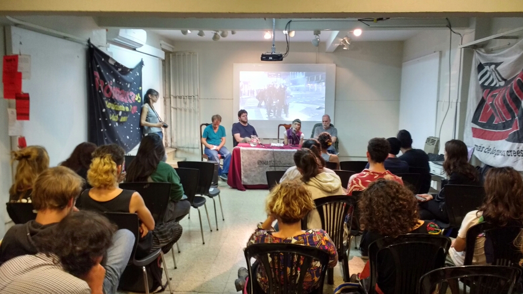 Los días 10, 12, 15, 19 y 24 de Mayo de 2017 llevamos a juicio oral y público a la Policía Metropolitana (hoy Policía de la Ciudad) que disparó balas de plomo contra los comunicadores de la RNMA en el violento desalojo del acampe de la Sala Alberdi en Marzo de 2013. El miércoles 31 de Mayo será la Sentencia.