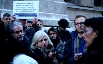 Luego de un mes de duración, el pasado martes 6 – un día antes del Día del Periodista – fue la lectura del veredicto en el Juicio a la Policía de Macri. En un fallo vergonzoso, irresponsable y cómplice, el Tribunal Oral en lo Criminal N°7, integrado por los jueces Gabriel Vega, Gustavo Rofrano y Gustavo Valle, absolvió a los policías Maximiliano Nelson Acosta y Miguel Antonio Ledesma, y decidió la pena leve de 3 años de prisión en suspenso para Gabriel Pereira de La Rosa por el delito de “abuso de armas y lesiones” – tal como lo había solicitado en su alegato el fiscal general Oscar Ciruzzi –, por disparar con balas de plomo a Esteban Ruffa y Germán Darío de los Santos, comunicadores de la Red Nacional de Medios Alternativos (RNMA) durante la violenta represión a la Sala Alberdi. A pesar de las contundentes pruebas en videos, la coincidencia de los testimonios presentados por la querella (que pedía 20 años de prisión por intento de homicidio agravado por ser fuerzas de seguridad), y la vaguedad, imprecisión y contradicción en los testimonios policiales, la justicia decidió una vez más pararse del lado de la impunidad, amparar a las fuerzas policiales represivas y al presidente Mauricio Macri, quien las comandaba esa noche de marzo de 2013 cuando era Jefe de Gobierno porteño. El martes 13 se conocerán los fundamentos del fallo del tribunal. Compartimos imágenes y videos del oscuro día de injusticia e impunidad.