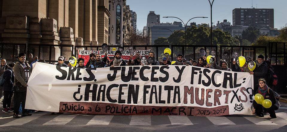 Los días 10, 12, 15, 19 y 24 de Mayo de 2017 llevamos a juicio oral y público a la Policía Metropolitana (hoy Policía de la Ciudad) que disparó balas de plomo contra los comunicadores de la RNMA en el violento desalojo del acampe de la Sala Alberdi en Marzo de 2013. El miércoles 31 de Mayo será la Sentencia.