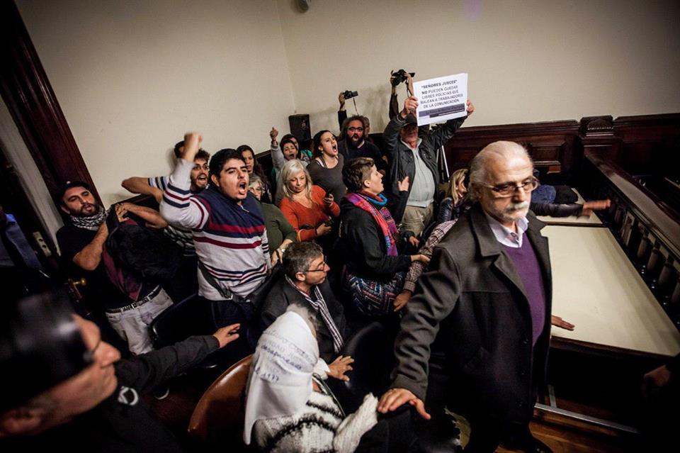 Los días 10, 12, 15, 19 y 24 de Mayo de 2017 llevamos a juicio oral y público a la Policía Metropolitana (hoy Policía de la Ciudad) que disparó balas de plomo contra los comunicadores de la RNMA en el violento desalojo del acampe de la Sala Alberdi en Marzo de 2013. El miércoles 31 de Mayo será la Sentencia.