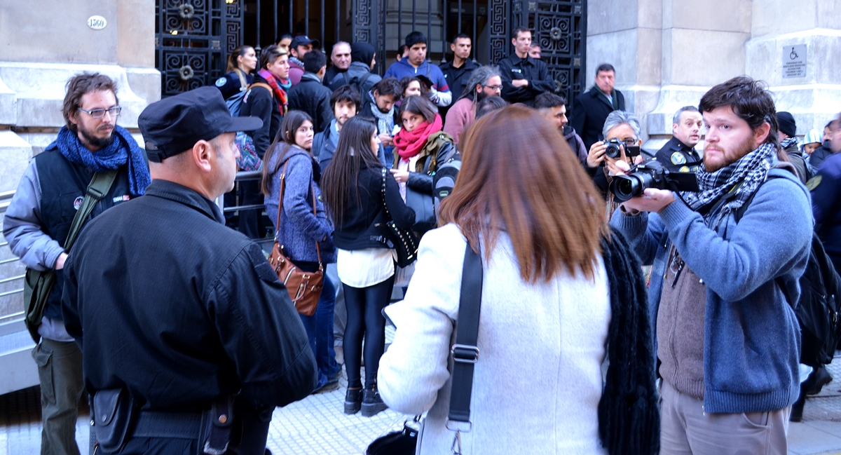 Los días 10, 12, 15, 19 y 24 de Mayo de 2017 llevamos a juicio oral y público a la Policía Metropolitana (hoy Policía de la Ciudad) que disparó balas de plomo contra los comunicadores de la RNMA en el violento desalojo del acampe de la Sala Alberdi en Marzo de 2013. El miércoles 31 de Mayo será la Sentencia.