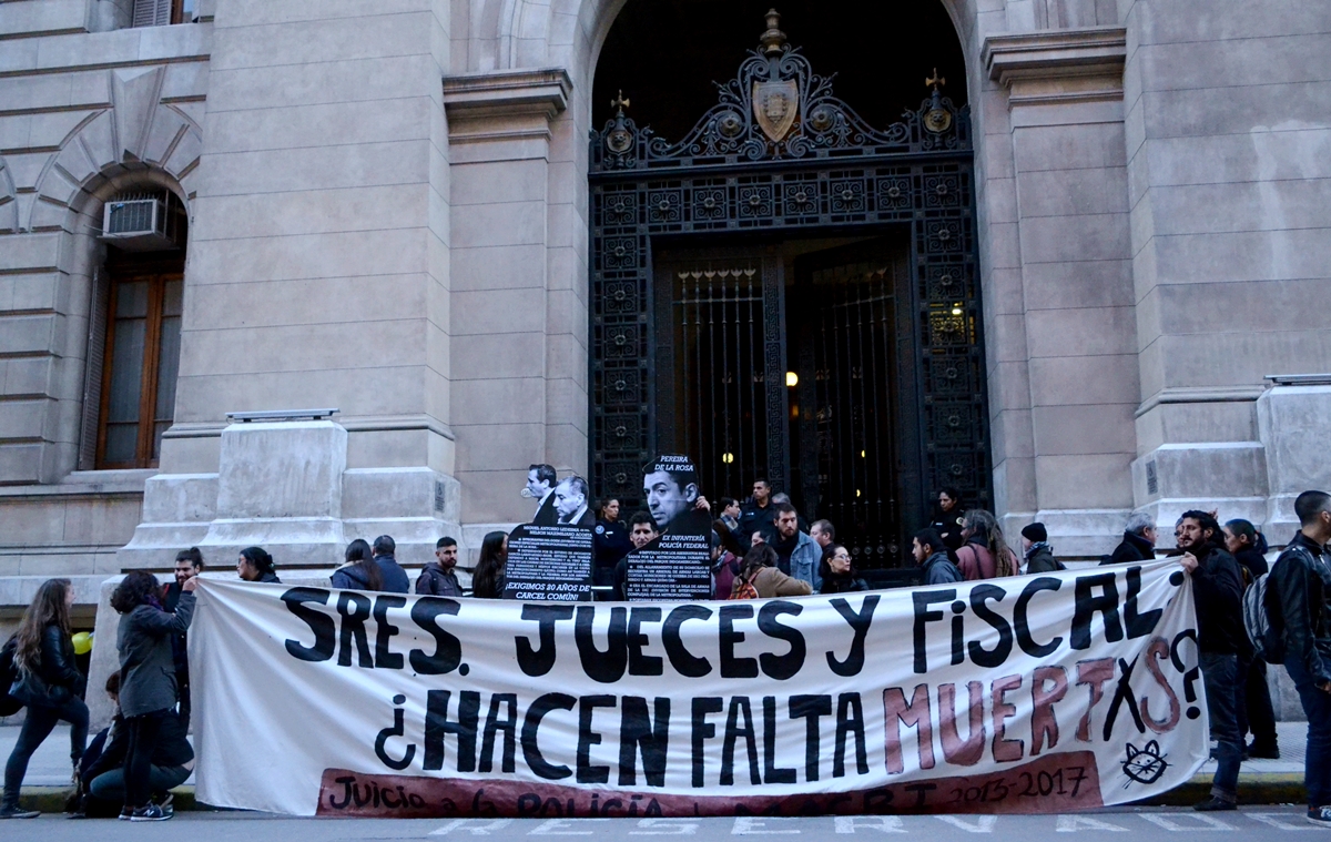 Los días 10, 12, 15, 19 y 24 de Mayo de 2017 llevamos a juicio oral y público a la Policía Metropolitana (hoy Policía de la Ciudad) que disparó balas de plomo contra los comunicadores de la RNMA en el violento desalojo del acampe de la Sala Alberdi en Marzo de 2013. El miércoles 31 de Mayo será la Sentencia.