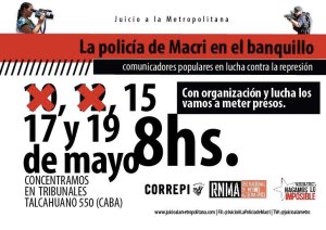 Se suman más días para el Juicio contra la policía de Macri. Luego de concluir las audiencias de los días 10 y 12 – marcadas por un gran apoyo de organizaciones y personalidades de DD.HH., sociales y políticas, tanto dentro como fuera de la sala – el Tribunal Oral en lo Criminal N° 7 (TOC 7) decidió sumar, dada la complejidad del proceso, dos días más: además de la audiencia ya estipulada para este lunes 15 de mayo (donde terminarán de declarar los testigos de la defensa policial), se agregan los días miércoles 17 (alegatos de la fiscalía y la querella) y viernes 19 (alegatos de la defensa policial, y posible fecha de sentencia). Así lo confirmó también ayer Germán Darío de los Santos – uno de los comunicadores heridos con balas de plomo disparadas por la Policía Metropolitana en marzo de 2013 – en el programa «Leña al Fuego», conducido por Herman Schiller.